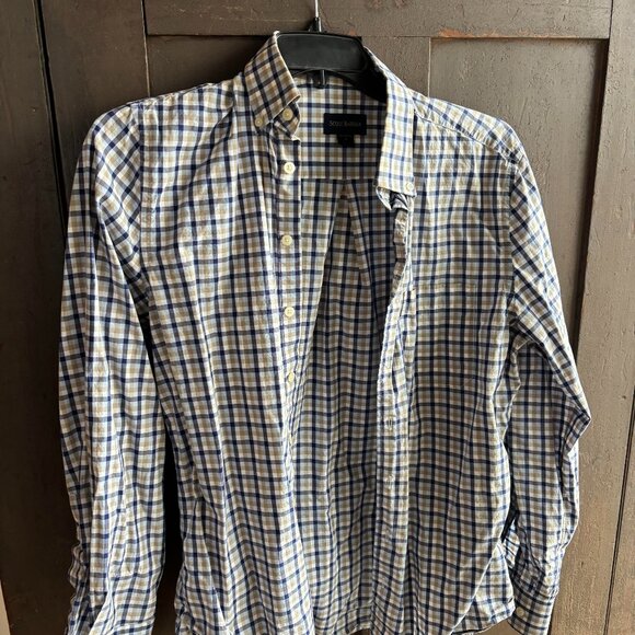 SCOTT BARBER BROWN AND BLUE CHECKED BUTTON DOWN SHIRT MENS M