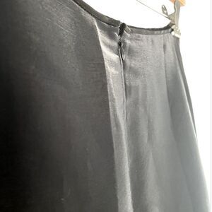 Gorgeous, shimmery, classic, and glamorous! This vintage SCOTT MCCLINTOCK skirt has an A-line fit with 2 layers of fabric: a shimmery chiffon-like top with a black silk-like lining. Hidden zipper and hook in the back. Would be great as half of a two piece gown, or paired with a crop top and leather jacket to dress it down! Size 8, excellent preowned condition. Top layer has a metallic/shimmer effect that is hard to photograph, but is shown pretty well in the images. Black color. Seems like it runs a bit small.