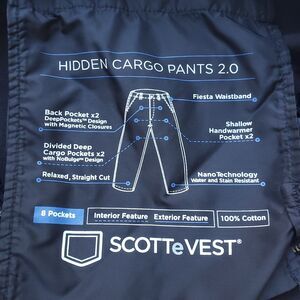 SCOTTeVEST Hidden Cargo Pants 2.0 Size 29 x 28 Hemmed (30x30 on Tag) TEC Black