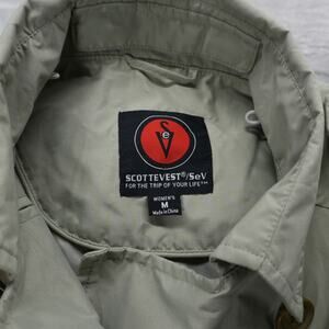 SCOTTeVEST SeV Womens Medium Trench Coat Sage Green Pockets Travel Business TEC