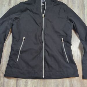 SCOTTeVest TEC Travel Jacket Black Size Large Cotton Hoodie Hooded Full Zip
