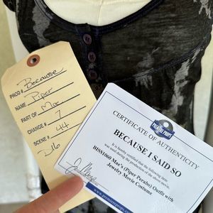 This screenworn bundle includes an American Eagle cami (size S) and an Urban Outfitters Kimchi & Blue printed top (size M) and a gold Ralph Lauren bracelet and black woven necklace. It will also include the costume design tag that lists scenes when these items were worn in the film, as well as, the character name/actress and more. Comes with a certificate of authenticity!