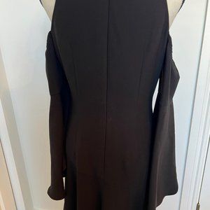 SCRIPTED M Cold Shoulder Bell Sleeve Little Black Dress Asymmetrical