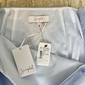 Scripted Peplum Ruffle Midi Skirt. Brand New with tags. Size Small. Blue and white stripes fabric.