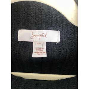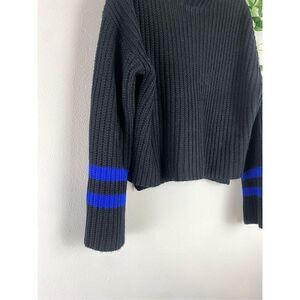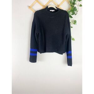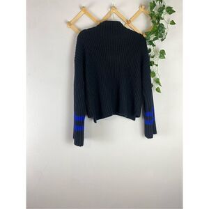 Striped cuffs lend a two-tone contrast to this knit sweater.