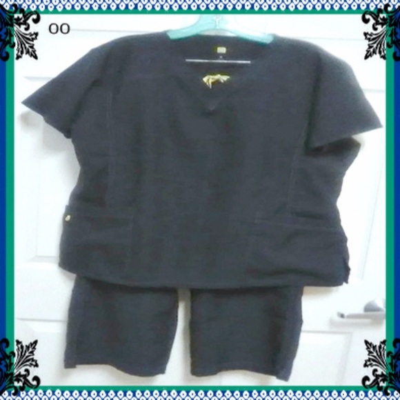 .....XLP NAVY WITH YELLOW TRIM SCRUB .....PIC MAKES PANTS LOOK SHORT .....