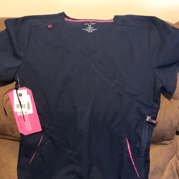 NAVY KOI SCRUB TOP. NEVER WORN WITH, NEW WITH TAGS