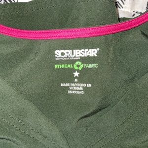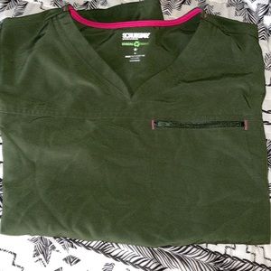 OLIVE GREEN AND PINK SCRUB TOP WORN ONE TIME SCRUBSTAR BRAND CUTE ZIPPER POCKET ON THE TOP