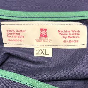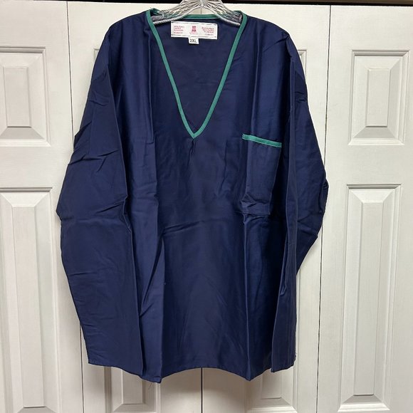 New FRHAN unisex scrub top, one chest pocket, color is blue, long sleeves, size 2XL100% cotton and MADE IN USA