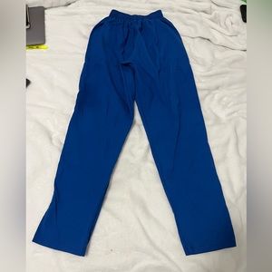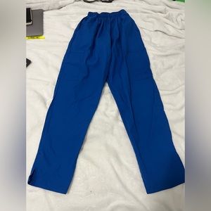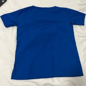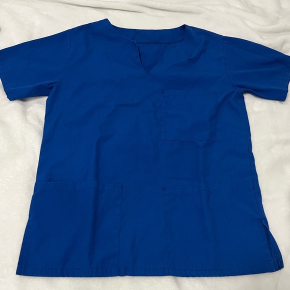 The scrubs were handmade by a patient of mine so definitely one of a kind, it’s an xs but runs big due to its relaxed fit so could fit a small, it has an elastic waistband and multiple patch/cargo pockets, it’s blue, good condition although there is a hole in the armpit area (per request i can fix it myself) and has been washed, and the original price is $30