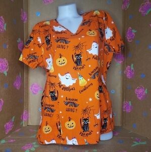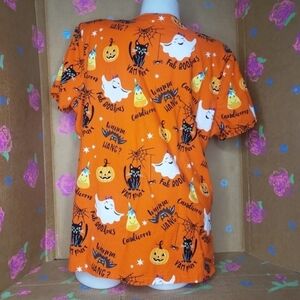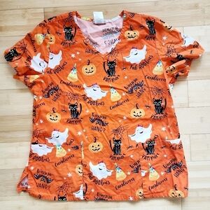 SCRUBSTAR ORANGE HALLOWEEN SCRUB Top Women's Large L Holiday Puns October Fall