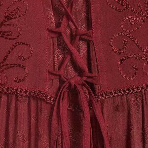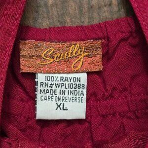 NWOT-never worn. SCULLY Burgandy Lace Front Dress is sleeveless with a tie waist in back. Approx length is 48", 100% Rayon perfect for a western or boho look.