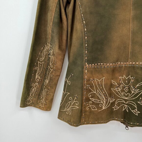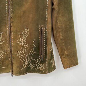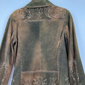 SCULLY Distressed Suede Leather Fully Lined Jacket w/ Embroidery & Sequins Elabo