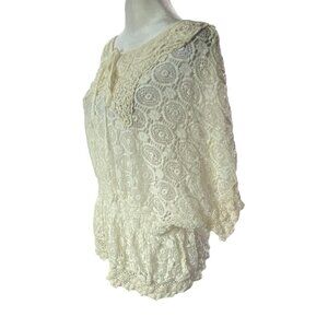 SCULLY Lace Top Kimono Short Sleeves Tie Neck Summer Romance Ivory M 81-5