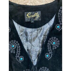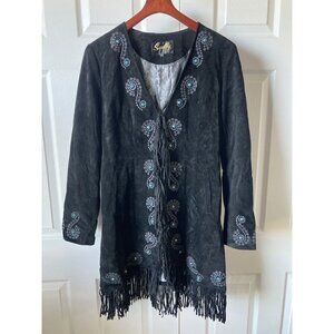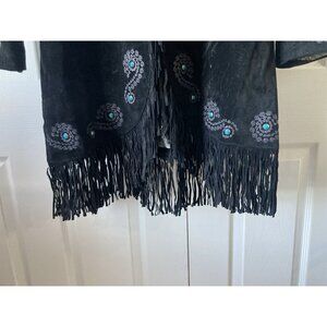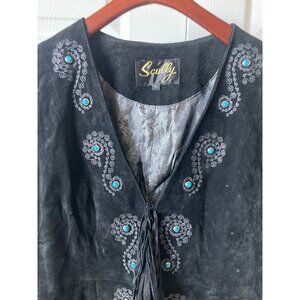 SCULLY Suede Leather Western Coat Jacket Fringe Turquoise Size Large