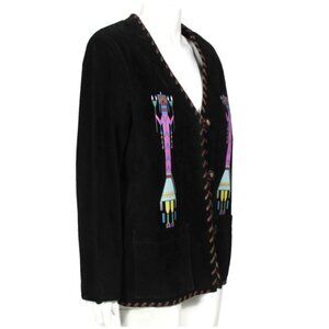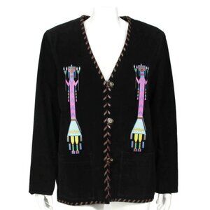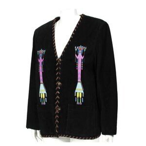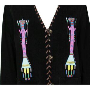SCULLY Western Kachina Black Suede Whipstich Trim Button Up Jacket sz L /603