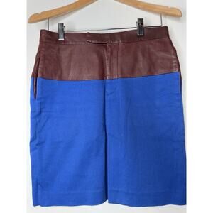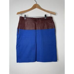 SCYE Midi Skirt 38 Blue Stretch Brown Leather Pencil Lined With Pockets Japan