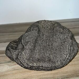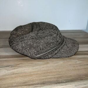 SDH Tweed Hat Womens Zipper Wool Tan Black Gold Cabby StreetWear Rocket Y2K