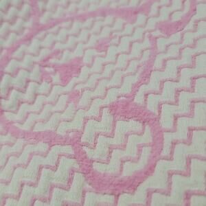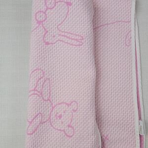 Woven, 100% cotton chenille baby blanket by SDH, makers of fine European linens. In the color Bubblegum and accented with adorable bears, cars, bunnies and more. Features 550 threads per square inch. Surely to become your little one's favorite blanky. Pre-owned, in good condition without any visible flaws. Made in Italy.