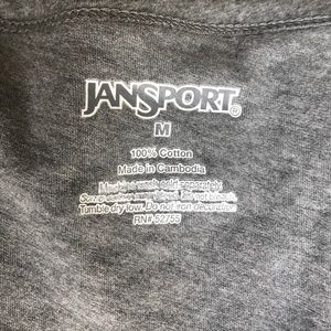Made by Jansport. New without tags. Tried on once but wrong size. Silk sleeves are slim. Text on front is a sparkely black