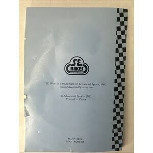 SE BIKES BMX Quick Start Owners Manual 2017 With CD. 2017-2022 Manual Book
