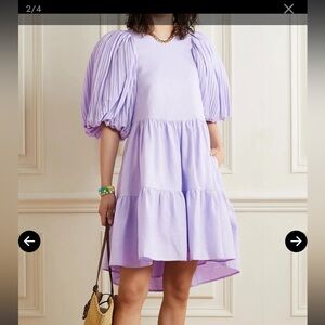 Charming lavender dress with puff sleeves, perfect for any occasion.