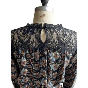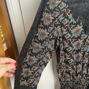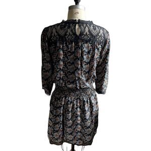 SEA Black Silk Paisley Print & Lace Neckline Dress - size 8