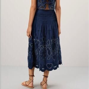 SEA Blue Eyelet Full Midi Skirt SIZE 4 Embroidered Prairie Western Designer $485