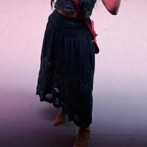 Gorgeous designer eyelet full midi skirt with a drop waist, embroidered throughout, and a scalloped hem. Country, western, prairie, preppy, romantic vibes.