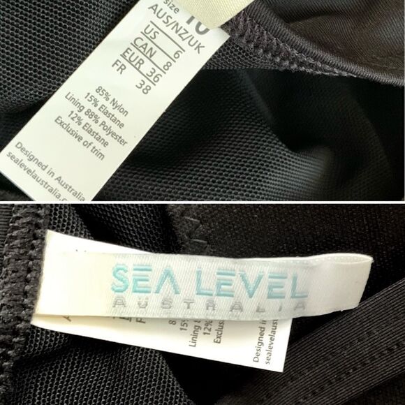 SEA LEVEL Cross Front One-Piece Swimsuit! Beautiful supportive and flattering one-piece swimsuit that has ruching at the hip and a crisscrossed gathered neckline. Lightly molded cups. Fully lined. Hygienic liner. New without price tag.