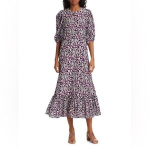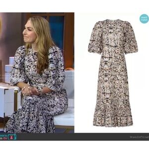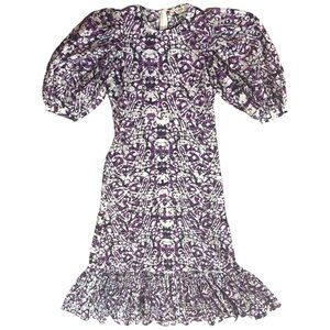 SEA NEW YORK Borealis Midi Dress Cotton Silk Puff Short Sleeve Ruffle Sz 2 NEW