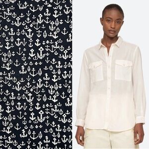 This Sea New York top is the versatile, everyday staple your wardrobe needs. Made with super soft 100% TENCEL and designed for a relaxed fit, this button down shirt features embossed 'Sea' logo buttons and multi-anchor graphic print for a touch of style. Elevate your casual look with this expertly crafted top.