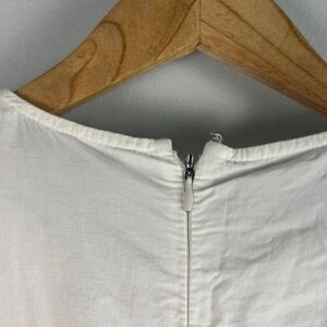 White cotton (100% Cotton). Shift. V-neck. Short sleeves. Back zipper closure