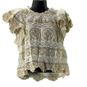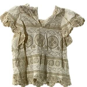SEA NEW YORK Women's Beige/Cream Evie Eyelet Lace Flutter Short Sleeve Top SZ S
