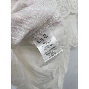 SEA NY EDIE EYELET RUFFLE TIER T SHIRT SIZE SMALL WHITE SHORT SLEEVE