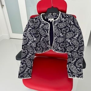 NWOT,PAISLEY PRINT,BUST 36.75,WAIST35.25,SHOULDER15,SLEEVE 29.75. 100% COTTON, TRIM 95% WOOL,LINING 100% COTTON. EXCELLENT CONDITION