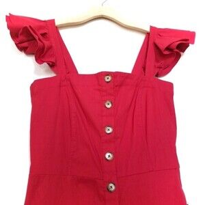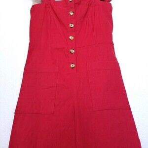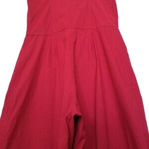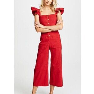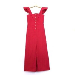 SEA NY Linen Callie Wide Leg Button Front Ankle Crop Jumpsuit Red Cottagecore 10