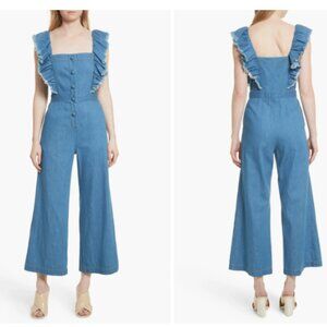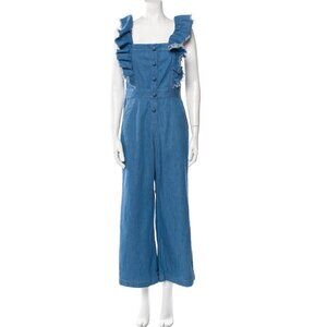 SEA NY Ruffled Shoulder Denim Jumpsuit