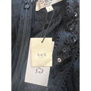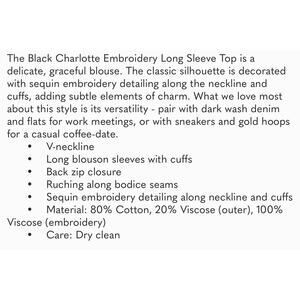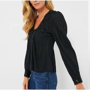 SEA New York Black Embroidered Charlotte Long Sleeve Top NWT Small