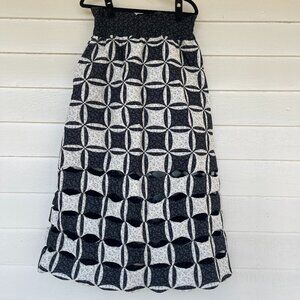 Absolutely stunning SEA New York skirt in excellent condition, worn only once. The skirt features quilted construction, elastic paperbag waist, dual side seam pockets and cutout detailing at hem with a slip-on styling. Best fits a waist between 26" and 28" and measures approx. 34" from waist to hem. Self & lining: 100% cotton,