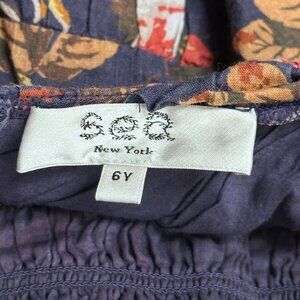 SEA New York Dress 6Y Girls Blue Navy Smocked Floral Fit & Flare Cut Out