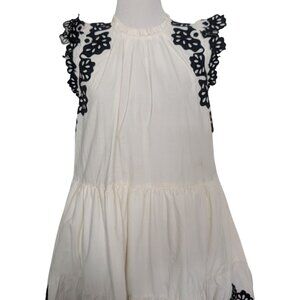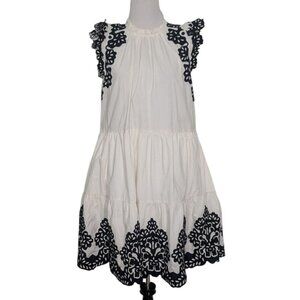 SEA New York Womens 100% Cotton White and Black Laila Embroidered Mini Dress Size Medium