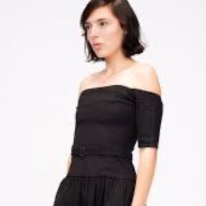 SEA New York Little Black Cocktail Dress off the Shoulder Linen/Cotton Blend