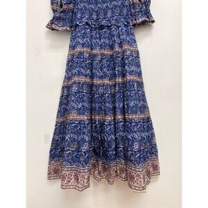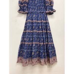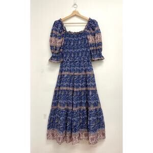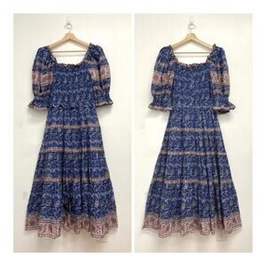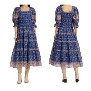 SEA New York Rosita Smocked Square Neck Puff-Sleeve Cotton Print Midi Dress XS