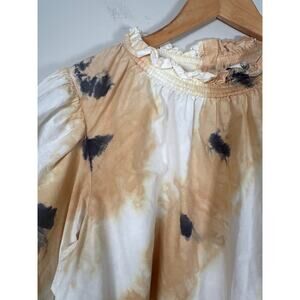 * SEA New York Tamara White Cream Tie Dye Long Puff Sleeve Mock Neck Blouse Medium