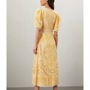 SEA New York Yellow Embrodered Midi Dress SIZE 16 Eyelet Designer Romantic $600
