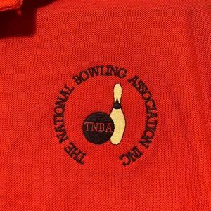 This red/blue shirt shows the official insignia of The National Bowling Association INC. on the breast embroidery. The back initials are for the same - T N B A.