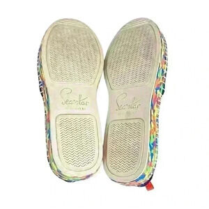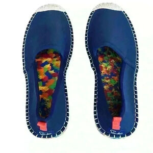 SEA STAR Beachcomber Woman’s Navy Blue Flats Slip on Espadrille Sandals Size 9 Multi Color Bottom Excellent Condition