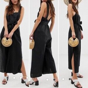 SEAFOLLY AUSTRALIA Black Criss Cross Back One Piece Jumpsuit LINEN XS Anthro