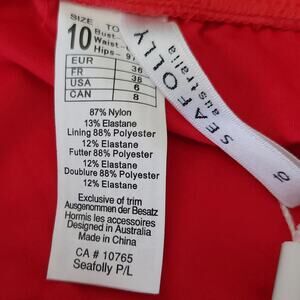 SEAFOLLY Australia Walk The Line striped zipper bikini bottom chili red Sz 6 NEW